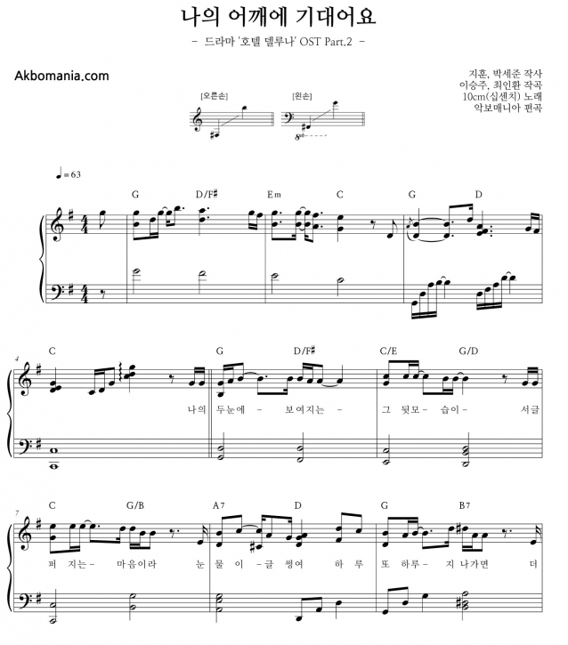 나의 어깨에 기대어요 (G Key)